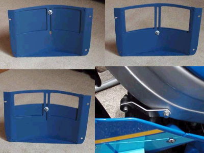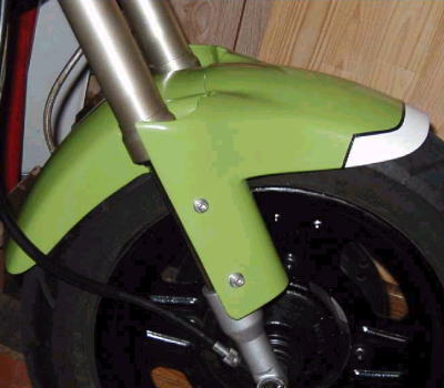 | KSR工作 その1 コメント:メールより抜粋 画像上 KSRには一応工具入れがありますが 浅すぎて実用性は全くありませんので アルミ板で作った箱を埋め込んで取り付け 実用的に改造しました 画像下 ダウンフェンダーの方が好みなので不要の 1KT用フェンダーを大改造して取り付けました 17インチ正立用を12インチ倒立用にするのに かなり苦労した一品です(笑) |