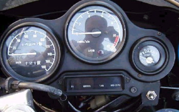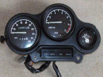 | NSR250用水温計組み込み コメント:メールより抜粋 NSR250の水温計の取り付けです 3XVの物ならぽん付けらしいのですが ヤフオクでも3XVのメーターは高値のため手が出ません たまたまNSRの水温計のみ出ていたので 非常に安く落札しておいた物です ただ、離せば判る世代の私にとっては 大きなパネルの3XVの方が良かったのですが(汗) 水温計自体はどうも同じメーカーの物のようで 抵抗値は全く同じで取り付けピッチまで同じでした 但しそのままでは1KTのメーターケースには 取り付けできません 1KTのケースの底板をそっくり切り取り 切り取った物から水温計の取り付け部と 照明の取り付け部を取り出して NSRにあわせてプラリペアで取り付けし 隙間をプラリペアで全部埋める作業が必要でした またNSRの方が二回り位小さいので そのままでは水温計内部が丸見えになるので 透明カバーにドーナツ状にカッティングシートを 貼ってごまかしてあります まあこれで一応水温が数字で見えるようになります |