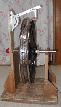 | 自作リム用振れ測定器!! コメント:メールより抜粋 最近1KTネタが無いのでXLRネタをお送りします(汗) リムのふれ測定器です ホイルが左右にずれないようにパイプでカラーを作り その外側をアルミブロックにセットネジを取り付けたもので 押さえてあります 上部測定金具は電動鋸の角度切りガイドを加工してあります |