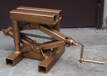 | 自作バイクジャッキ コメント:メールより抜粋 今回はバイクジャッキです 車のジャッキとパイプを 組み合わせて作りました ジャッキにはハンドルを取り付け 簡単に回せるようにしてあります メンテスタンドとして 又上部に別作の板をはめ込んで 1KTのエンジン載せ替えの時に 使用する予定です |