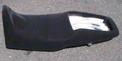 | (驚)シート加工 コメント:掲示板より抜粋 シート生地の張り替え及びシート後部の スポンジをくり抜いてちょっとした工具が 収納できるようにしました 生地はスウェード風の物を友人より頂いたので それを張ってみました なかなか上品な感じなのですが ホコリが付きやすいのが難点です |